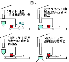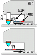 油墨在這機(jī)款中是放置于倒轉(zhuǎn)的密封式油盅里(圖4)。油盅緊貼于鋼板表面,令油墨不會漏出。同時間,油盅也有刀片的作用,在鋼板上來回移動,把油墨留在蝕刻圖案上。這裝置的好處是溶劑的揮發(fā)度可以降至最低。但要留意的是,油盅的價錢是可以很貴的,所以需要小心地使用。油盅的類型越來越多變,無論在尺寸及設(shè)計(jì)方面,均能切合使用者之需要。