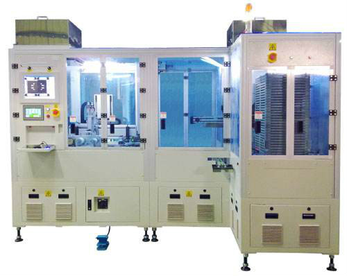 自動化移印機(jī)設(shè)備,包括:旋轉(zhuǎn)伺服工作臺、移印機(jī)結(jié)構(gòu)、油盅,油杯油墨盤、送料機(jī)構(gòu)、出料通道、進(jìn)料抓取機(jī)構(gòu)和出料抓取機(jī)構(gòu),該旋轉(zhuǎn)工作臺上設(shè)置有若干個不斷轉(zhuǎn)動而改變其與移印機(jī)構(gòu)、進(jìn)料抓取機(jī)構(gòu)和出料抓取機(jī)構(gòu)相對應(yīng)位置關(guān)系的移印工作位,該移印工作位至少包括進(jìn)料位、自動移印位以及出料位,該送料機(jī)構(gòu)具有送料通道,該移印機(jī)構(gòu)和油墨盤位于旋轉(zhuǎn)工作臺的移印位周邊以對產(chǎn)品進(jìn)行移印操作,該送料通道出口和進(jìn)料抓取機(jī)構(gòu)位于旋轉(zhuǎn)工作臺的進(jìn)料位周邊以讓進(jìn)料抓取機(jī)構(gòu)將產(chǎn)品抓取至進(jìn)料位處,該出料通道入口和出料抓取機(jī)構(gòu)位于旋轉(zhuǎn)工作臺的出料位周邊以讓出料抓取機(jī)構(gòu)將產(chǎn)品抓取至出料通道中。本實用新型具有自動化程度高和移印效果好的特點。