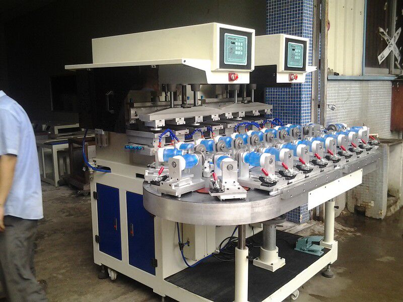 四色穿梭油盆移印機(jī)及四色穿梭油盅移印機(jī)廠家移印是一種印刷工藝,它的原理非常簡(jiǎn)單,通過用硅橡膠鑄成的移印頭將鋼凹版或感光膠凹版上的圖文轉(zhuǎn)印到承印物上.移印機(jī)可以用于平面或各種成型物的印刷中,如鐘表,電子,玻璃制品、塑料制品、金屬制品、光學(xué)制品等.它的主要特點(diǎn)是可以針對(duì)不規(guī)則的異形凹凸表面進(jìn)行印刷,這是采用其他印刷方式很難完成甚至無法完成的,而采用移印就可以輕松完成,并且可以實(shí)現(xiàn)多色精美印刷.這對(duì)于儀器、設(shè)備以及一些小產(chǎn)品的表面印刷來說是非常理想的印刷方式.另外,其印刷穩(wěn)定、持續(xù),即使長(zhǎng)時(shí)間印刷,印刷精度也不會(huì)改變,且省去了干燥程序,還連續(xù)多色印刷. 移印機(jī)從顏色上分主要有單色、雙色、四色、六色和八色等;從自動(dòng)化程度上分為手動(dòng)式、半自動(dòng)式和全自動(dòng)式等,而目前還出現(xiàn)了帶有CTP系統(tǒng)的移印機(jī),使得自動(dòng)化程度進(jìn)一步提高.這里主要從移印機(jī)的整體結(jié)構(gòu)以及某些局部關(guān)鍵部件對(duì)當(dāng)前市場(chǎng)上主要的移印機(jī)進(jìn)行分析.四色穿梭油盆移印機(jī)及四色穿梭油盅移印機(jī)廠家